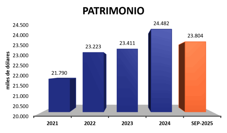 En lo que representa a septiembre 2025, se ratifica la fortaleza financiera de la compañía, registrando un patrimonio de USD 23,804 millones.